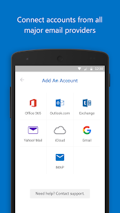 Outlook for Android works with Microsoft Exchange, Office 365, Outlook.com, Gmail and Yahoo Mail.